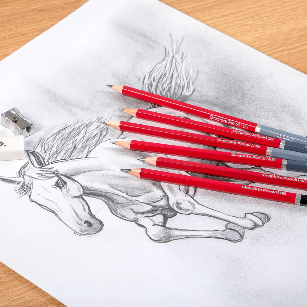 Unleash your inner artist with this playful Mont Marte drawing set! Six carefully curated graphite grades—from crisp 2H to bold 8B—let you layer everything from delicate whispers to dramatic shadows. Whether you're doodling quick ideas or crafting intricate masterpieces, each pencil glides smoothly across the page, blending beautifully for endless tonal possibilities. Bonus: eraser and metal sharpener included, so you're ready to sketch right out of the box. Perfect companion for Mont Marte sketch books, visual diaries, and sketch pads.