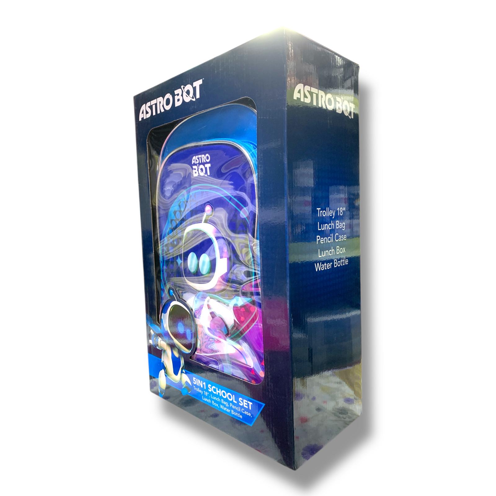 Astro Boy 5 in 1 School Set 18" Trolley Bag Lunch Bag Pencil Case Lunch Box Water Bottle || بوكس العودة للمدرسة 5 قطع جنطة ترولي كبيرة 18 انش شنطة اكل مقلمة لانش بوكس مطارة ماء استرو بوي