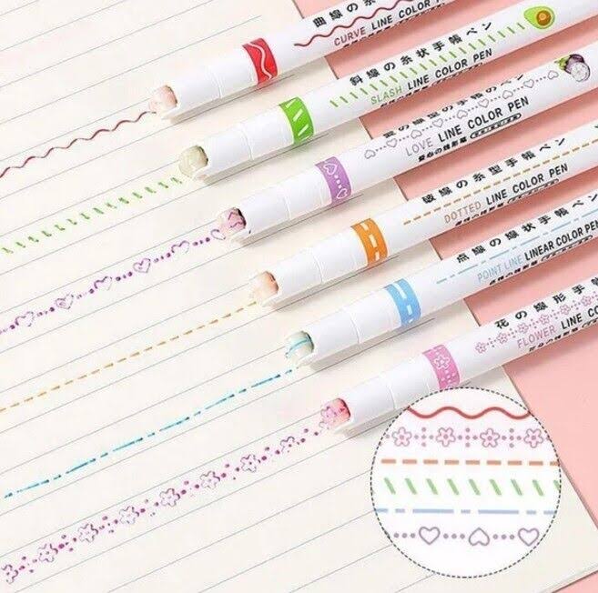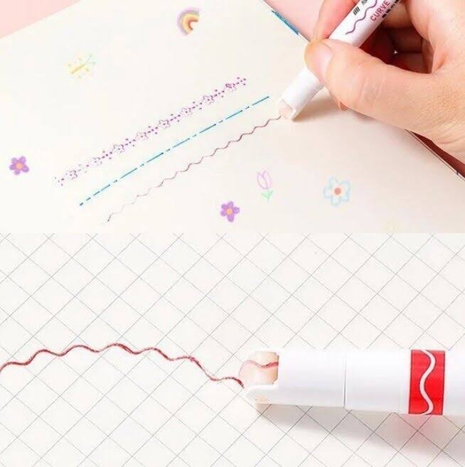 Line Shaped Curved Highlighter || قلم تخطيط ملون بزخارف